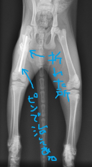 右足の骨折と皮膚が剥けるほどの火傷をおって病院に運び込まれた子です。